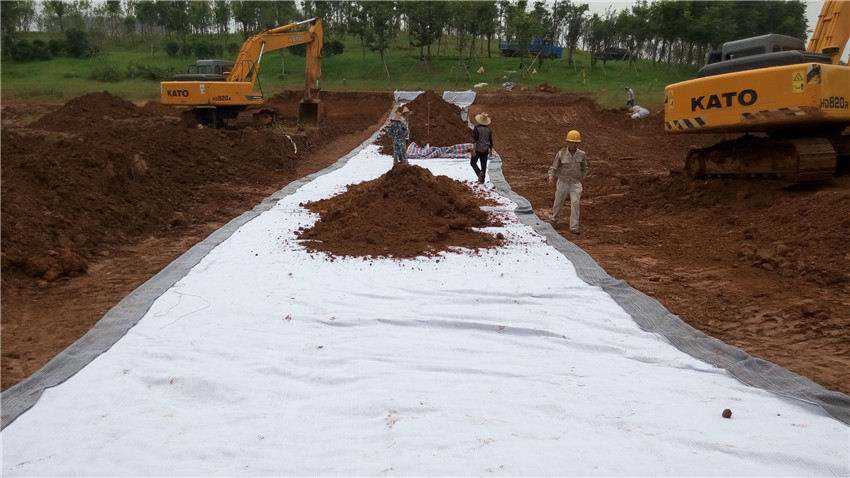 復合土工膜與防水毯結合使用的施工是:有些工程的防滲像人工湖、水庫等在選址后發現庫地或湖底的地基不是粘土層,而是沙礫層,這樣的基礎表面顆粒凸起嚴重并松軟,如果直接鋪設復合土工膜的話,會對膜造成破壞,還由于松軟的原因,水壓對膜的壓力不均勻,長期使用容易出現破洞滲漏,這時就需要用混凝土或是放水毯來重新把基層做好做實,現在大部分是采用鋪設放水毯,這樣省時省力,加快工程建設進度,成本還低,所以在防滲工程基層是沙礫或是更為復雜惡劣的需要防水毯+復合土工膜結合施工。